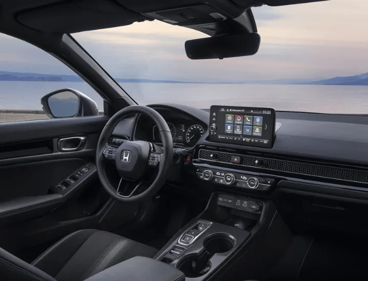 A estética interior do Honda Civic Híbrido obedece a uma abordagem minimalista, focada na experiência de condução do condutor através do painel de instrumentos digital e o ecrã digital de 9’’ com navegação. As dimensões do para-brisas garantem uma visão panorâmica e uma sensação maior de espaço. Em poucas palavras, é outro nível.