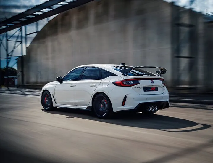 O novo Type R foi pensado ao detalhe com foco na performance. Desde as entradas de ar dianteiras inspiradas nas corridas, que ajudam a maximizar o arrefecimento do motor e dos travões, ao spoiler traseiro que aumenta o downforce em velocidades elevadas. Tudo pensado para otimizar a sua experiência de condução.